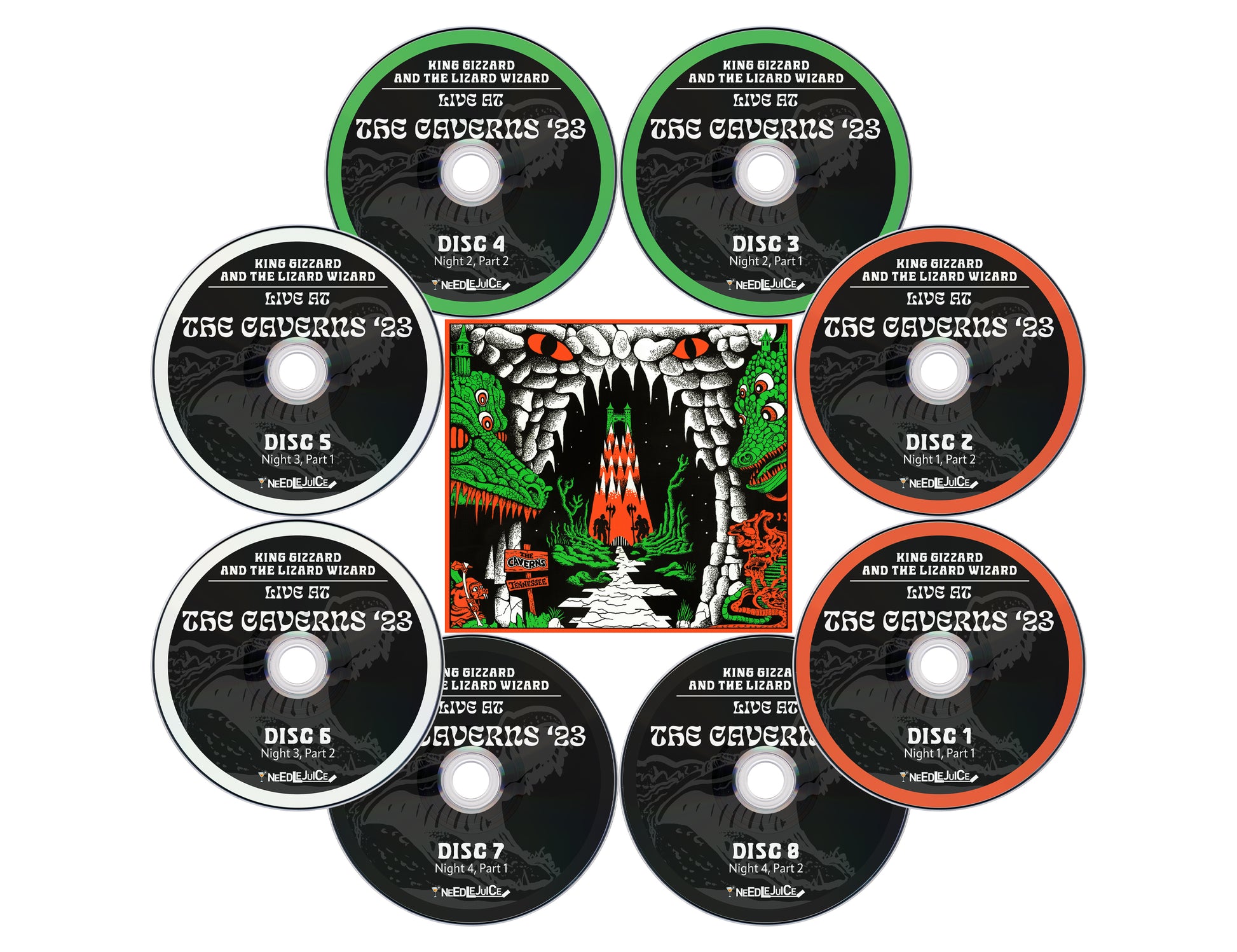 King Gizzard graced The Caverns, a cave venue in middle Tennessee with their presence for 4 nights during their 2023 residency tour. Two nights in the cave, two nights in the amphitheater. Night 3 was Drag Night, in which the band dressed in drag in solidarity for LGBT+ rights. Night 4 was the legendary acoustic night. This set contains every moment King Gizzard were on stage during one of the most iconic 4-night runs King Gizzard fans have ever witnessed.
