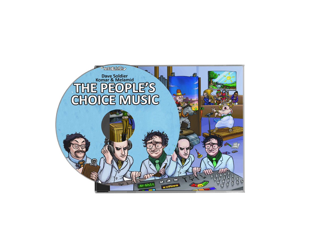 “Believe me, it’s hard for me to listen to also.” – Dave Soldier Needlejuice is pleased to announce the release of Dave Soldier’s The People’s Choice Music. The album is available in 2 fittingly bizarre LP variants: Pretty Ugly (baby blue/dookie brown swirl) and Wally Wheel (yellow/blue pinwheel). The album will also be available on CD and cassette after being out of print for over two decades. All formats will feature remastered audio and brand-new artwork. The People’s Choice Music is the brainchild of Russian conceptual artists Vitaly Komar and Alexander Melamid. In the 90s, the duo conducted a series of polls to determine what aspects were liked and disliked in art. With this data, the two constructed “most wanted” and “most unwanted” paintings based on the results. Experimental musician Dave Soldier was enlisted to compose a musical extension of the project, resulting in The Most Wanted Song and The Most Unwanted Song. The Most Wanted Song features smooth guitar work by In Living Color guitarist Vernon Reid, while The Most Unwanted Song is a cacophony of bagpipes, children celebrating the holidays, and an opera singer rapping about the Old West.