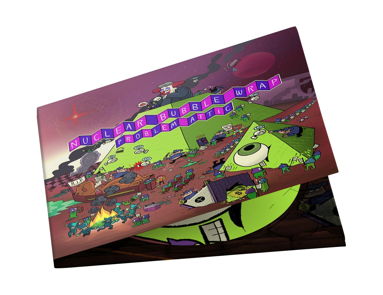 Nuclear Bubble Wrap’s greatest creation yet, Problem Attic is a 45-minute genre-hopping roller coaster ride through the hurricane of BS that’s terrorized us for our entire lives. It’s the experience of growing up in a miserable world on the verge of falling apart. Corporations paper over cruelty with fake smiles. The people who should have been doing something about it decades ago avoid responsibility.